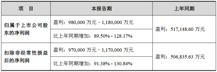 1月30日,中际旭创(300308)发布公告,公司预计2025年归母净利润98亿元至118亿元,同比增长89.50%至128.17%,具体如下: